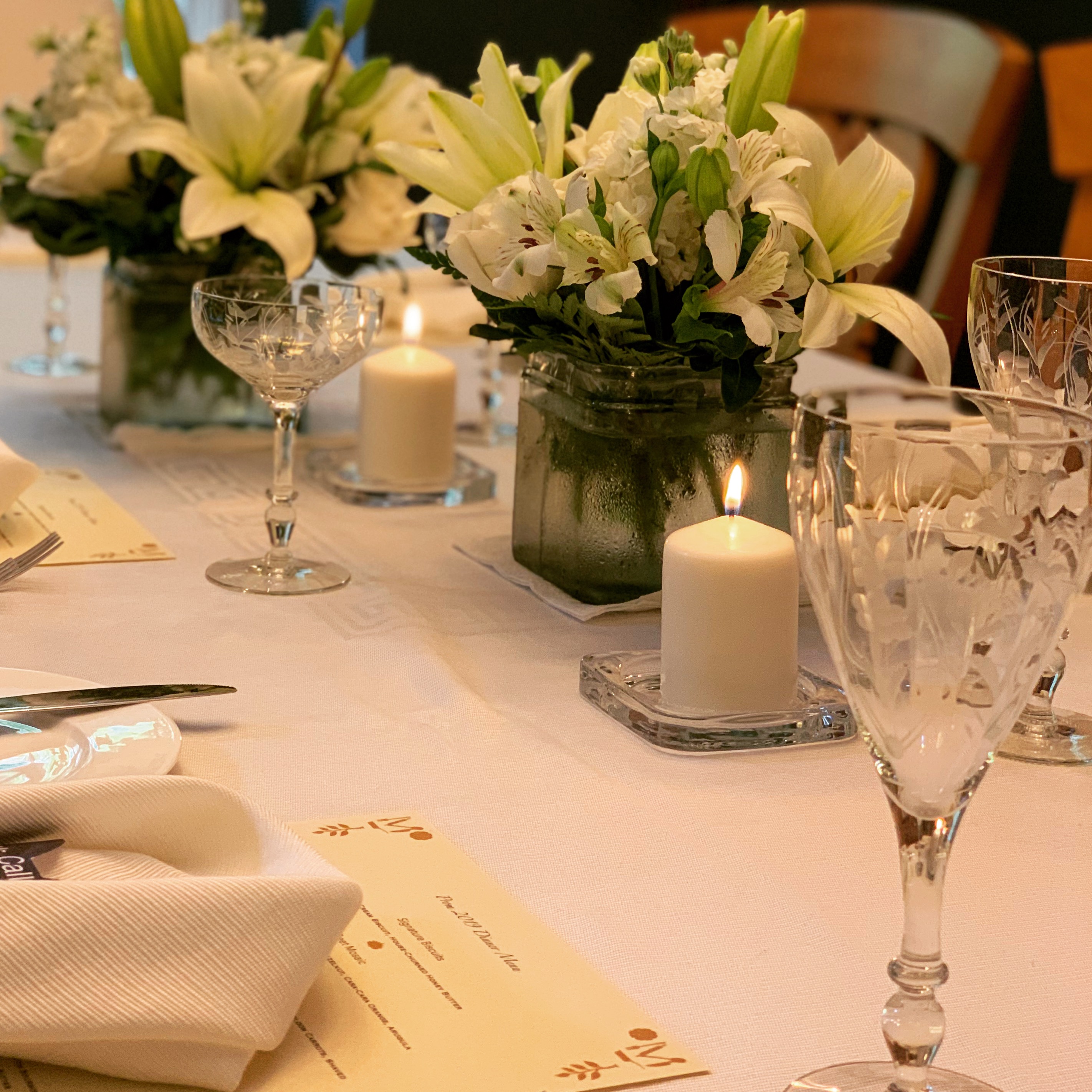 For the safety of all patrons we have taken extensive measures to prevent the spread of any disease on the premises. We thoroughly clean and sanitize all areas in which guests have access to prior to every weekly seating, in addition the service staff will be masked at all times, and no guests will have access to the kitchen at any time during service.